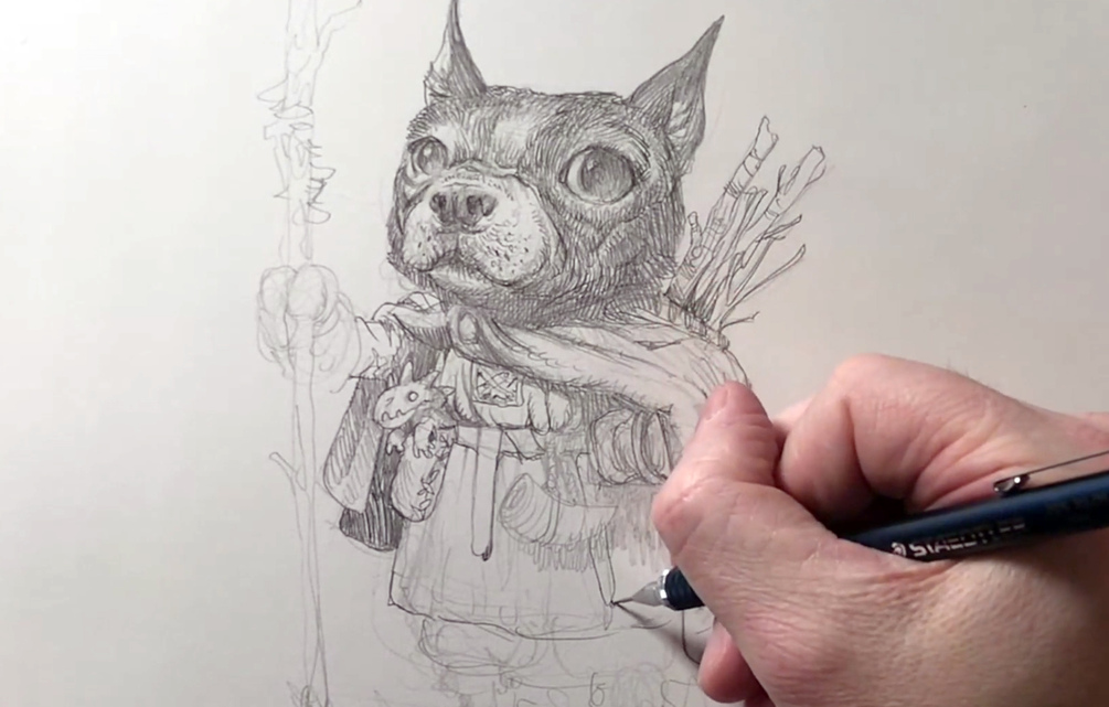 In part 1, Justin Gerard goes over his character design assignment, shows his concepting and reference process, and then draws the piece out in pencil to a beautiful completed finish.